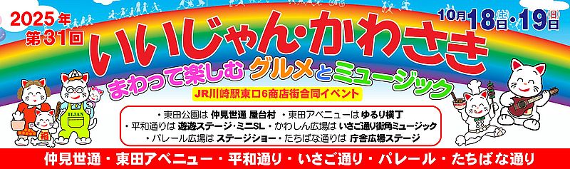 たちばな通り商店街はJR川崎駅から徒歩2〜3分、ファッションビル「岡田屋モアーズ」横から東西に約340メートル、一部南北に交差していて約100メートルに伸びる路線型の街並みです。周辺には川崎市役所、銀柳街商店街があり、金融機関なども多く、商店街はSC、大型店、物販店、飲食店、サービスレジャー業の他、銀行、証券、市役所南庁舎など、総店舗数約150店で構成されています。